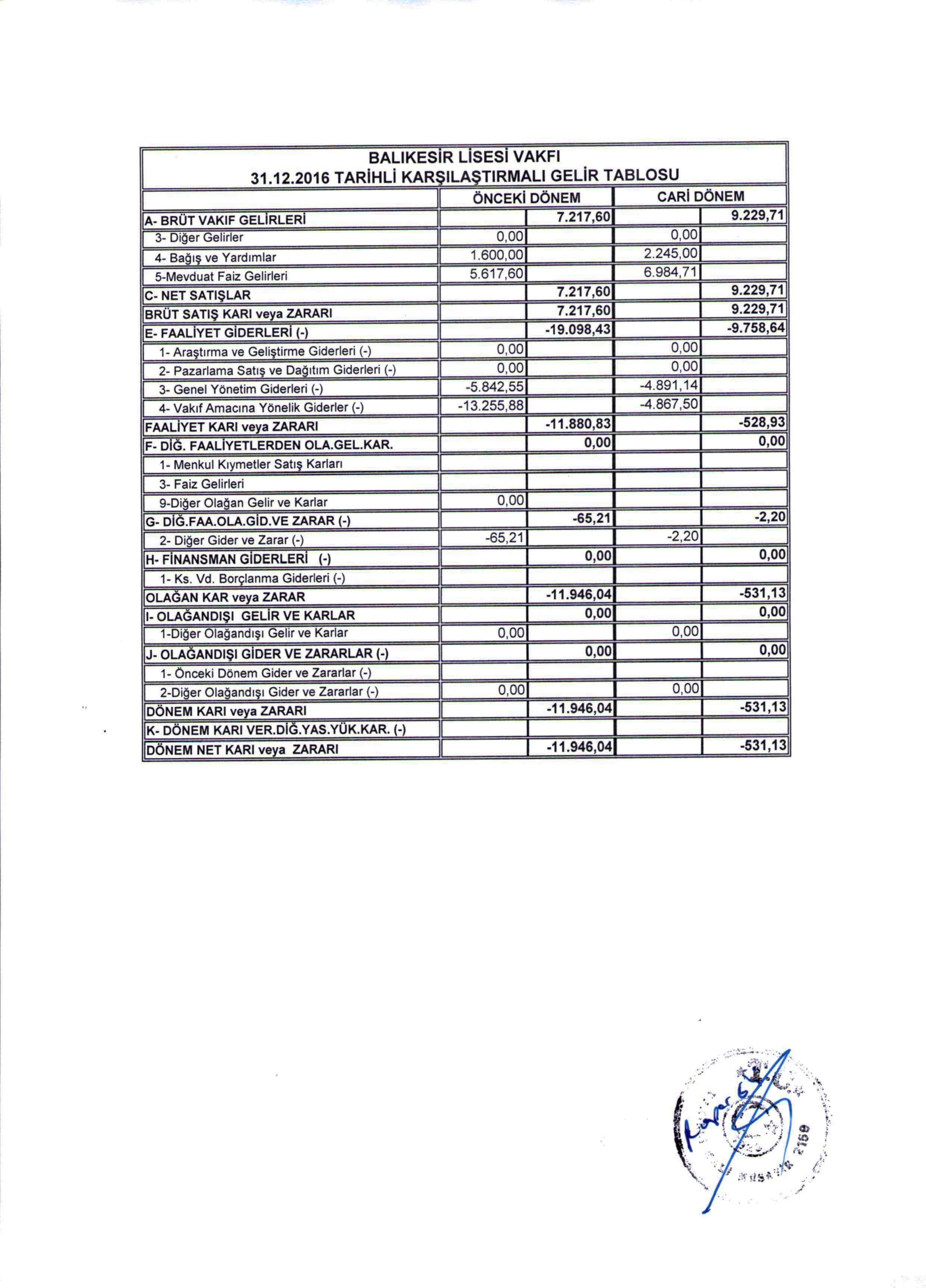 MALİ TABLOLAR |