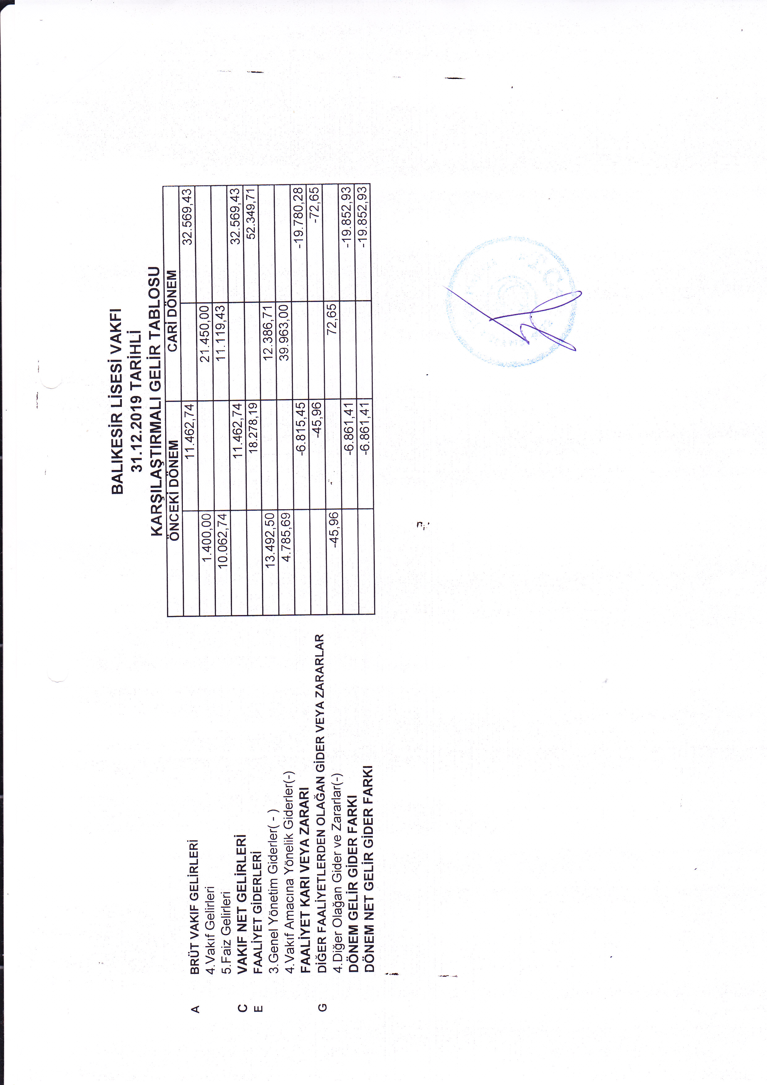 2019 Gelir Gider |